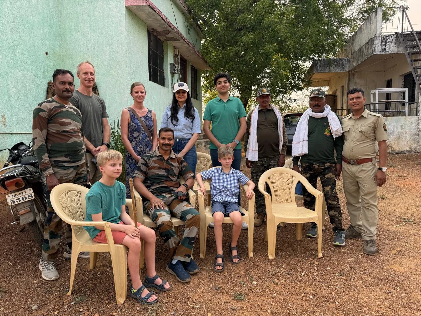 Interacting alongside Mr Keylock and his family with villagers affected by human animal conflict in Tadoba transition forest areas